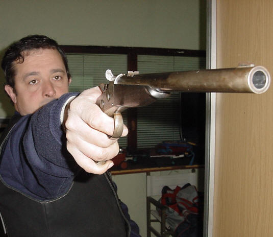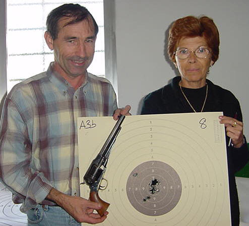 practican con revólver de avancarga.