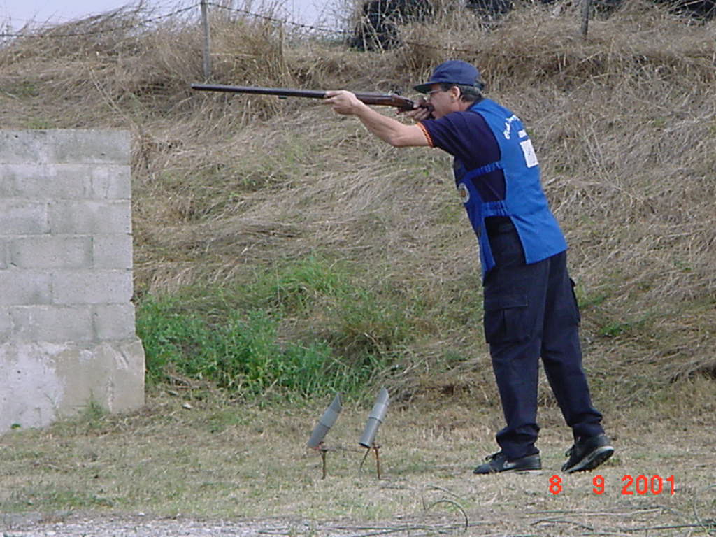 Irenee Lassalle en acción. Tirando al plato con escopeta de
