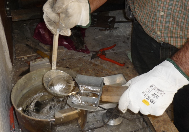 Reciclando plomo procedente de tuberías de agua. Tras eliminar