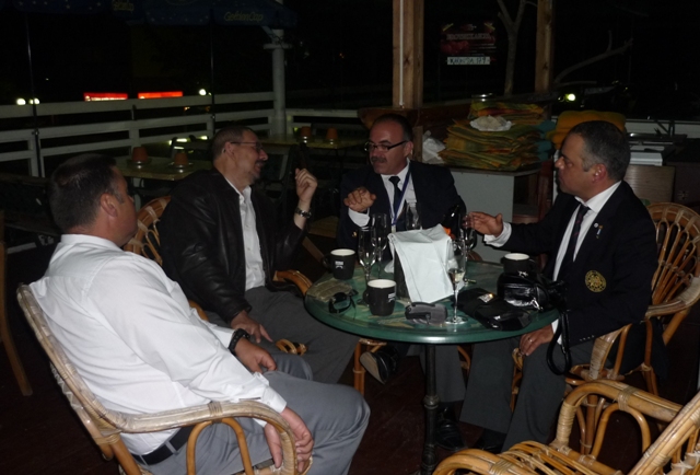 | 16.- Campeonato de Europa 2011 Hamina-Finlandia. De tertulia con los compañeros del equipo portugués, Joao, Santos y Cruz. | 17.- Campeonato de Europa 2011 Hamina-Finlandia. Con el amigo Tarmo Ansamaa, actual capitán del equipo finés, y uno de los mejores tiradores del mundo. | |