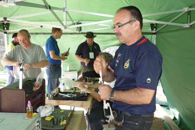 | 18.- Campeonato de Europa 2011 Hamina-Finlandia. Nuestros "cachorros" nos esperaban para ayudarnos a nuestro regreso. | 19.- Campeonato de Europa 2011 Hamina-Finlandia. La limpieza es fundamental en la consecución de resultados y tras las sesiones de entrenamiento, nos dedicamos a fondo para tenerlas en condiciones de tiro. | |