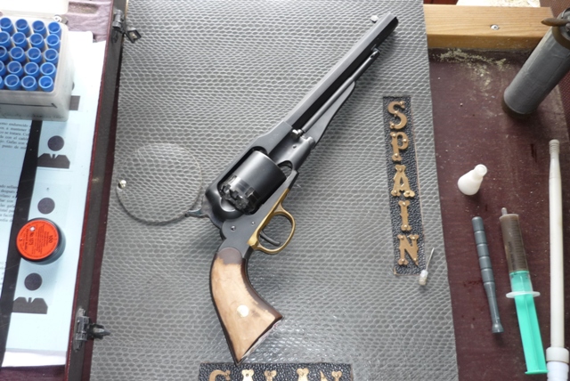 2.- Campeonato de Europa 2011 Hamina-Finlandia. Estado en el que quedaron las cachas del Rémington del autor tras pasar por el control de armas. Caprichos de dicho control, la temporada siguiente y sucesivas se aceptaron en este y otros revólveres. Aun así nos llevamos el título de Mariette. |