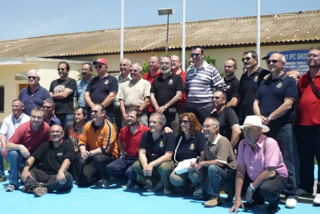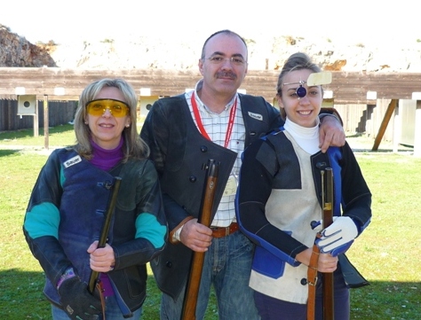 | COE 9.- Sede del Comité Olímpico Español -Madrid-. Gala del Deporte 2011. Galán recibe una placa conmemorativa de D. Francisco Sanz, presidente de la Federación Valenciana de Tiro Olímpico. | 50.- Campeonato de España 2011, Las Gabias-Granada. Solo Dios sabe qué estábamos celebrando, pero no creo que hiciera falta mucho para probar un "caldo" de los de Eduardo. Eduardo, Galán y Laso. | |