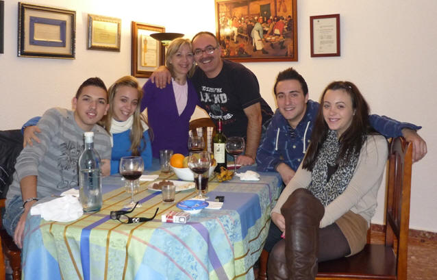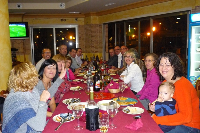 | 10.- La familia al completo, mis dos hijas, Claudia y Marta, con mis dos yernos, Antonio y Adrià. | 12.- Cena de amistad que celebramos a final de año. Rafa, Agustín, Miguel, Galán y Paco. | |