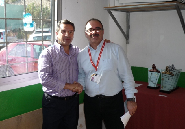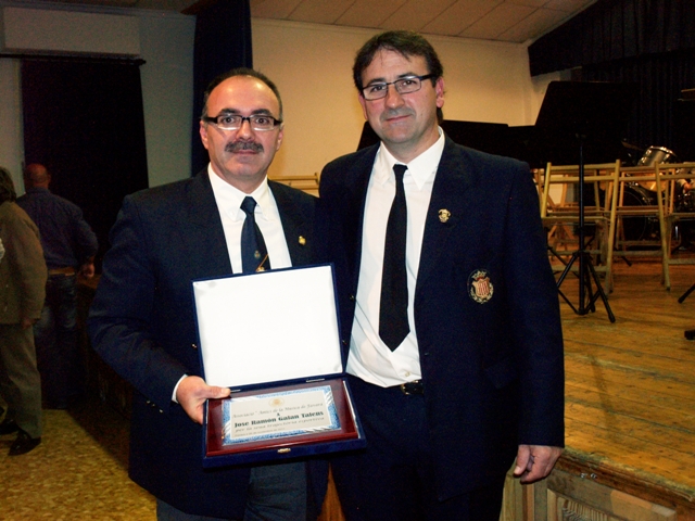 | 13.- La asociación "Amics de la Música" de Favara nos hicieron un reconocimiento por los éxitos deportivos. | 14.- Rafa Gisbert, presidente de la asociación "Amics de la Música" de Favara hace entrega de la placa conmemorativa. | |