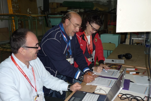 | 18.- Sala de clasificación del Club de Tiro Olímpico Cullera. Galán, Nacher y Paz. | 19.- El alcalde de Cullera, D. Ernesto Sanjuan, hizo entrega de los premios de la competición Triangular Albacete-Alicante-Cullera. | |