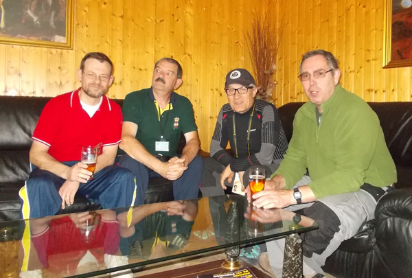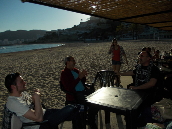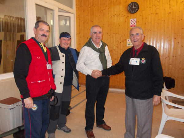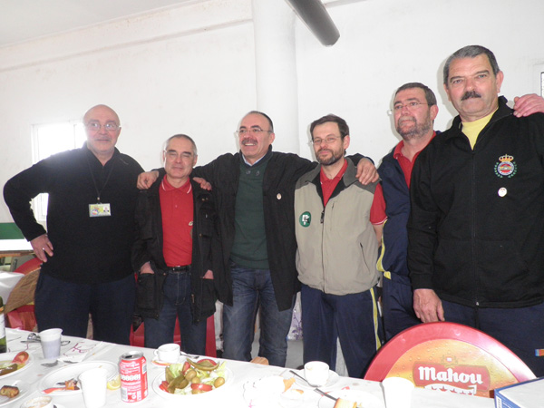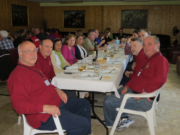 Izq. 61.- Triangular Arcabuceros del Sureste, Alicante. Los responsables de la organización de la competición Triangular. Jerónimo por Albacete, Jesús y Toni por Alicante y Paco Pla por Cullera. Der. 62.- Triangular Arcabuceros del Sureste, Alicante. Y tras la competición nos sentamos a la mesa para continuar hablando de lo mismo. |