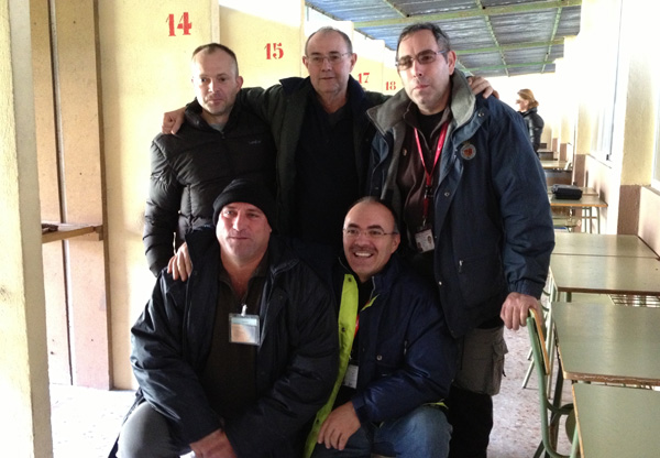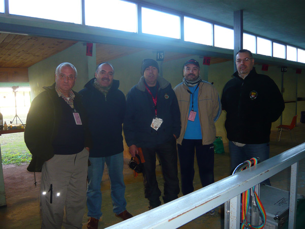 Izq. 57.- Triangular Arcabuceros del Sureste, Alicante. Jesús ejerciendo de árbitro, organizador, presidente y lo que haga falta. Con Toni, Pedro y José Murcia. Der. 58.- En una tirada social en Náquera-Valencia. Andréu, Galán, Pla, Miguel y Rafa. |
