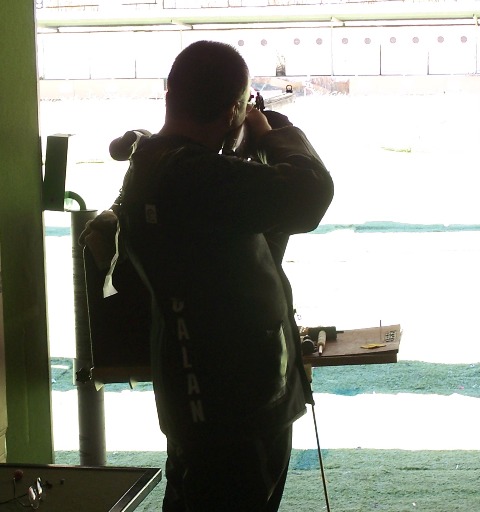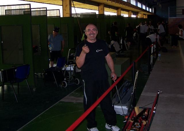 Izq. 9.- El autor probando la pistola Lacouture à Lyon de ARSA. Der. 10.- Campeonato de España de Avancarga en el CEAR de las Gabias-Granada. Competición con buena sintonía y camaradería. |