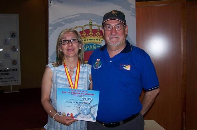 Izq. 15.- Campeonato de España AH en el CEAR de las Gabias-Granada. Claudia recibe de D. Ramón Sellés, el título de campeona de Walkiria del Grand Prix "Príncipe de Asturias" disputado en Madrid la temporada 2013 y que por razones técnicas no pudo recoger en su momento. Der. 16.- Campeonato de España de Avancarga en el CEAR de las Gabias-Granada. Córcoles, Esteban y Galán. |