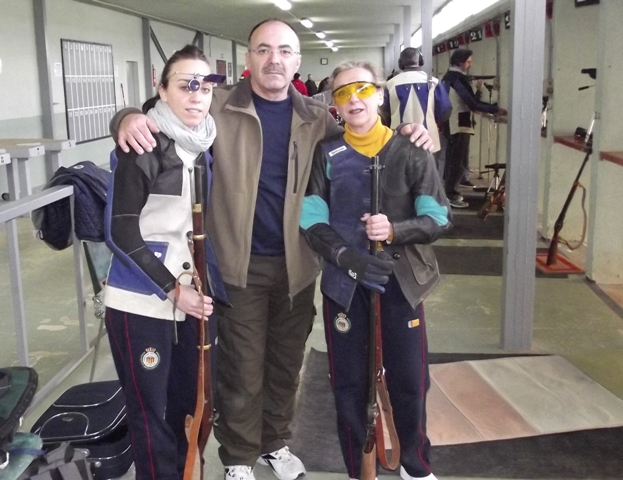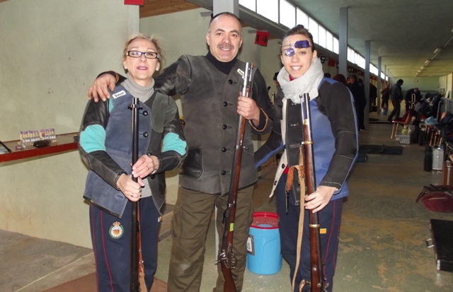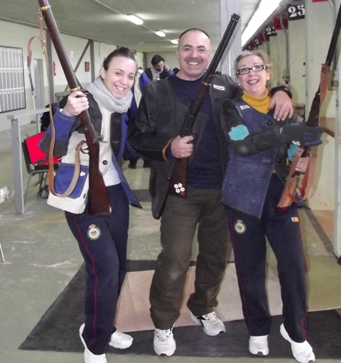 Izq. 5.- Campeonato Autonómico en Náquera-Valencia. Línea de tiro en una de las entradas del campeonato. Der. 6.- Campeonato Autonómico en Náquera-Valencia. La práctica del tiro en familia es una constante en nosotros. Claudia, Galán y Marta. |