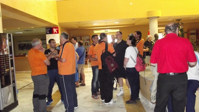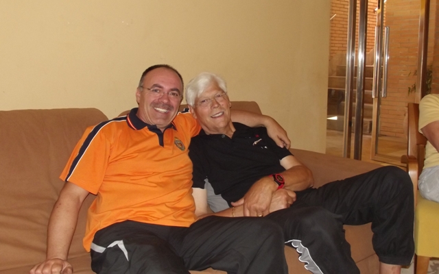 Izq. 19.- Campeonato de España en CEAR de Granada. Primer encuentro durante la entrega de dorsales. Der. 20.- Campeonato de España en CEAR de Granada. La escuadra portuguesa al completo. Participaron en el campeonato a modo de ensayo del mundial. Joaquim Rocha, Carlos Cunha, Joäo Faria, Adelino Rocha y Carlos Santos. |