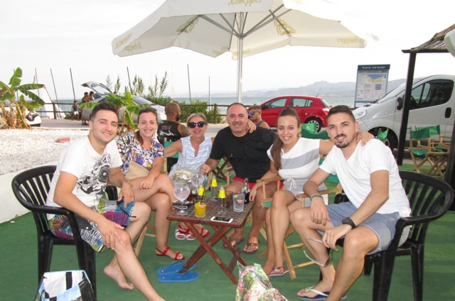Izq. 33.- Xiringuito platja de l'Illa. Kayak, playa y cervecita en la arena. No se puede pedir más. Der. 34.- Great QDD en Cullera. Por las caras, creo poder asegurar que hacía calor. Estas reuniones estrechan lazos de amistad, y la "casalleta" los refuerza. |