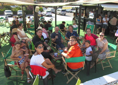 Izq. 53.- Comida en la terraza del "Goloso" con su magnífica vista sobre la Bahía de Cullera, y porque queda muy cerca de nuestro apartamento en el Faro de Cullera. Der. 54.- Great QDD en Cullera "Memorial Francisco Bolonio". Tomamos un refresco en "la Perla Negra" con los amigos de Badajoz, Javi, Ana y los Fernando Vaquero. |