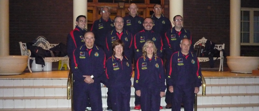 2.- Equipo representante español en el Campeonato del Mundo MLAIC de 2000 disputado en Adelaide-Australia. Foto de grupo con Antonio Gallego, José Muñoz, Manuel Ramos, José Luis Pérez Pastor, Salvador Guardiola, José Luis Pérez Molero, Manuel Astudillo, Nunci Rodríguez José Triquell y José Ramón Galán. |