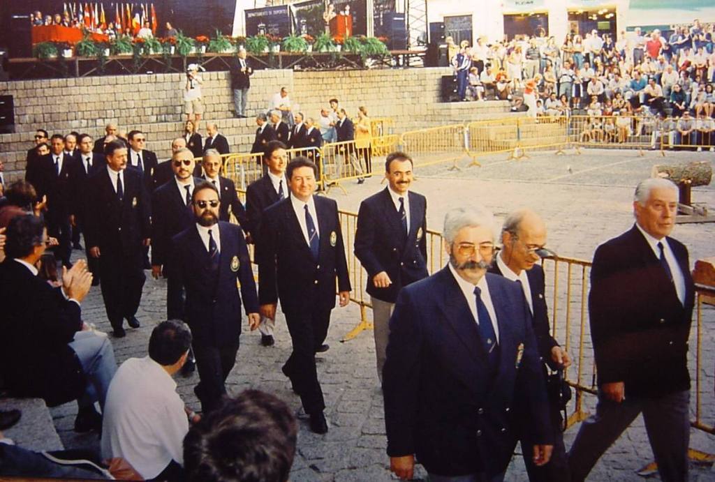 1.- Desfile inaugural del Campeonato de Europa MLAIC de 1995 disputado en Vitoria-España. Foto del paso del Equipo Español. Al frente Luis Ortiz de Zárate, José Borja y Samuel Fullana, les siguen José Muñoz, Alfredo Rodríguez, José Ramón Galán, Juan Ramón Alonso, José Pairaló, Eduardo Fernández, Luciano Álvarez, Alberto Pastor, José Ignacio Risco, Eugenio Martín, Nunci Rodríguez, José Triquell, Emilio Ramos, Dolores Vázquez, Lisardo García, Antonio Calvo, Fernando Gurmendi, José Luis Pérez Pastor, Gerardo García, Antonio Boronat, José Julio Vañó, Manuel Garrido, Juan María Esquirol, Daniela Molero, Carmen de Miguel, Juan José Giner, Jesús Núñez, Joaquín Gaya, Manuel Astudillo, Francisco Acaso, Juan Ferraté, Francisco Pastor y José Vilá Subirats. Una delegación potente. |