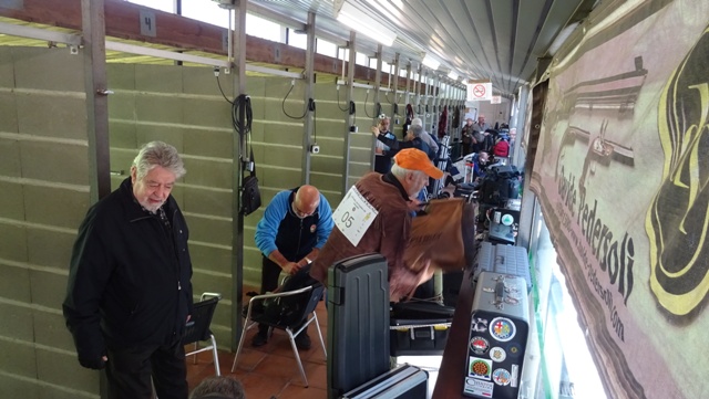 Izq. 49.- Great QDD en Cullera. José Andréu "apretando" la ya popular bota de José Murcia, un invitado clásico en nuestro club. José Luis Pérez Pastor y Paco Pla en segundo plano. Der. 50.- "Trofeu Fusellers de Sabadell". Imagen de ambiente en la línea de tiro de la cancha de armas históricas. |