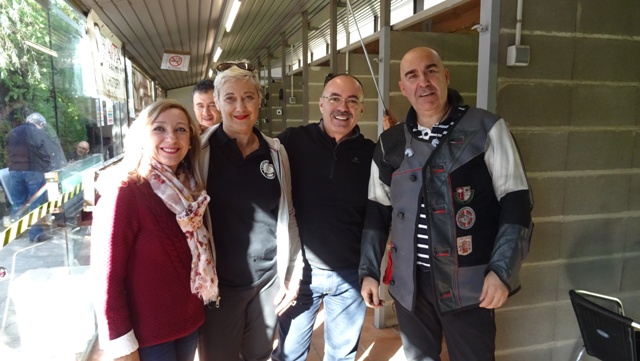 Izq. 51.- "Trofeu Fusellers de Sabadell". El ambiente en el exterior de la cancha de tiro no es menos bueno. Der. 52.- "Trofeu Fusellers de Sabadell". Claudia, Ana Isabel, Galán y Luis Felipe. La orden de "abran fuego" siempre nos pillaba en puesto ajeno. |