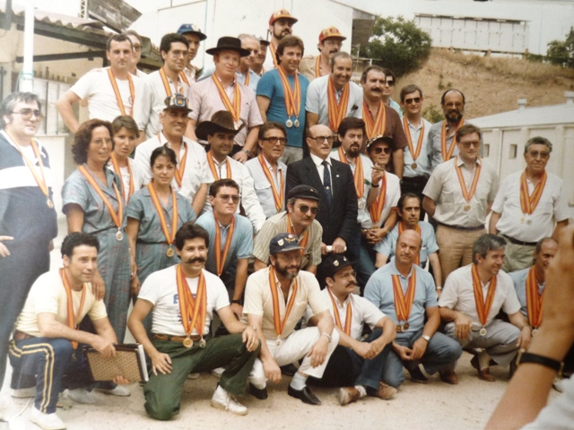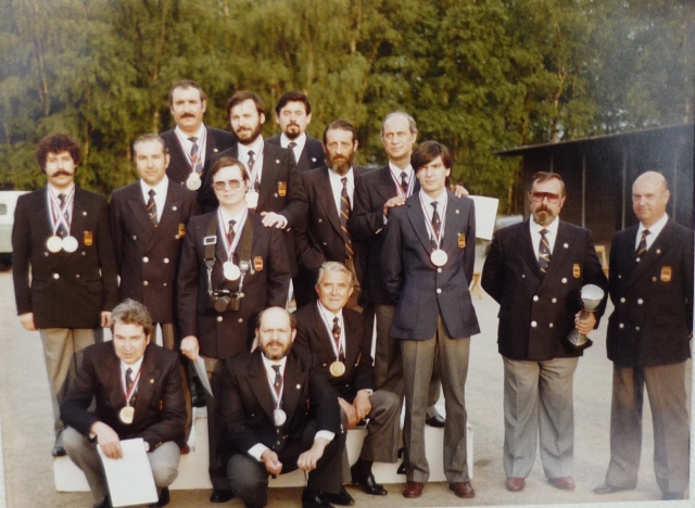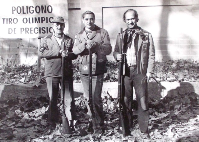 0a.- Pioneros del Tiro Deportivo con Armas de Avancarga en 1973. 0b.- Equipo español en el Campeonato Mundial 1985 disputado en Madrid-España. Los acompaña (centro de la imagen), Rivas Cerviño, presidente de la RFEDETO. |