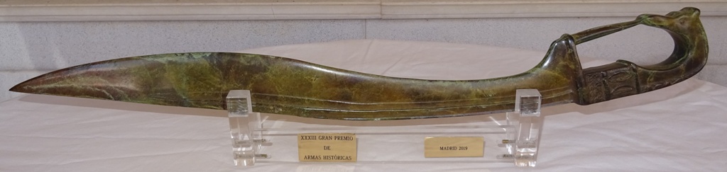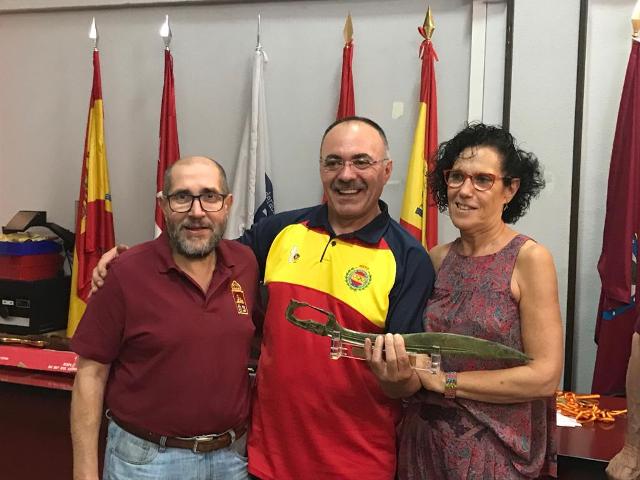 18.- Con el entrañable amigo Eugenio Martín. XXXIII TROFEO DE ARMAS HISTÓRICAS FMTO. A la derecha, Fernando Serrano y su esposa Merche me hacen entrega de falcata ibérica con un gran valor añadido, fue propiedad de Manuel Astudillo, una autoridad en nuestro deporte, que desgraciadamente ya no está entre nosotros. |