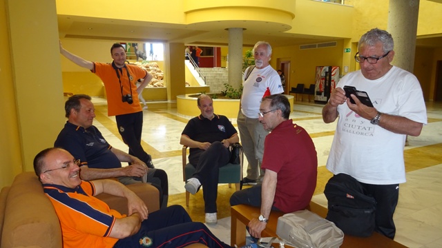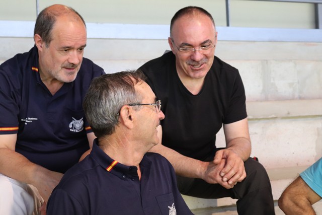 32.- Campeonato de España 2019 disputado en el CEAR de Granada. Momentos de relax que aprovechamos para intercambiar anécdotas. 33.- También en las gradas mientras somos espectadores. Con Eugenio Martín y Pedro Laso. |
