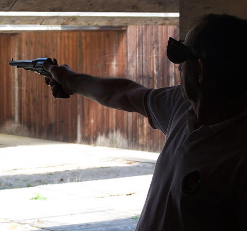 practican con revólver de avancarga.