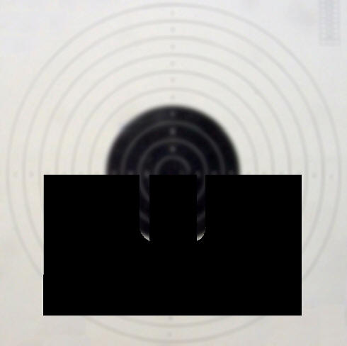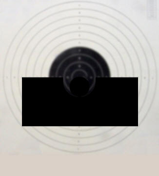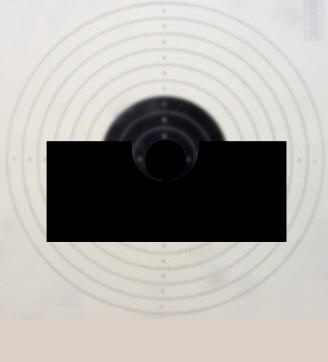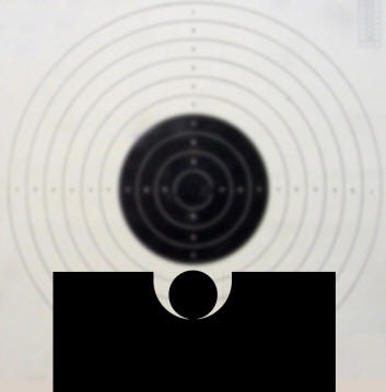 derecha, enrasado con el centro del blanco.