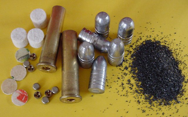 Teniendo en cuenta que la recarga de este cartucho con pólvora negra para la actividad venatoria puede ser también muy interesante y divertido, haré una serie de comentarios que pudieran ser de interés. Actualmente la caza con armas de pólvora negra ya no está prohibida en España, aunque deberemos preguntar en que lugares y Comunidades Autónomas esta permitida la caza con estas. Podemos asegurar que el cartucho 45-70 cargado con pólvora negra es perfectamente válido para la caza de todas las especies cinegéticas del continente Europeo. En cuanto a la recarga para esta actividad, debemos tener en cuenta que la cantidad de pólvora negra debería ser la máxima admitida (capacidad de la vaina), es decir entre 60 y 75 grain, dependiendo del proyectil empleado, con el fin de obtener la máxima potencia. Variando el tipo de proyectil y peso (entre 350 y 510 grain), obtendremos diferentes cualidades balísticas, mayor rasante, potencia, penetración etc... Siempre deberemos usar la mejor pólvora negra que podamos encontrar en los comercios del ramo, pues de ello dependerá en gran manera los resultados finales. Debemos tener en cuenta que la recarga con pólvora negra ¡¡exclusivamente!! no reviste ningún peligro aunque usemos las cargas máximas, siempre y cuando no exista ninguna obstrucción en el cañón y el arma este en condiciones de tipo. De la misma forma podemos variar la carga de mil maneras, con taco o sin el, tipos de proyectiles, recalibrados, grasas, aleaciones, cantidades y tipo de pólvoras, granulaciones y un muy largo etc... que hará muy amena la práctica con este tipo de armas. De todas formas, no debemos despreciar su potencia, pues aunque actualmente se considera marginal (sobre el papel y formulas matemáticas), con este cartucho ha sido abatida mucha fauna, incluida una gran parte de las grandes manadas de búfalos de las praderas de Norteamérica en el siglo XIX. Y es que, con el proyectil de 500 grain a 380-400 metros por segundo, se puede hacer mucho daño a la caza, con el único inconveniente de la poca rasante que tiene, pero si lo usamos a una distancia de entre 100-150 metros como máximo, quedaremos gratamente sorprendidos de los resultados. Independientemente de la zona de impacto, un proyectil de plomo de 500 grain es tremendamente letal sobre cualquier ser vivo. El único inconveniente reside en la importante caída del pesado proyectil animado de una baja velocidad, algo a lo que no están acostumbrados los cazadores actuales, acostumbrados a los disparos tensos con proyectiles ligeros de menos de 200 grain a velocidades por encima de los 750 mts, que les permite usar miras telescópicas que sin hacer grandes cálculos pueden impactar sobre animales a distancias superiores a los 250 metros, algo que mas que caza se podríamos considerar casi como tiro al blanco. Actualmente en Norteamérica esta muy de moda la caza con armas monotiro de pólvora negra, sean de avancarga o cartucho metálico, por la componente deportiva que encierran al tener que acechar a la pieza de caza hasta distancias que garanticen la posibilidad de abatirlas, ya que se dispone de una sola opción de disparo, dando a la pieza la oportunidad de escapar si no hemos sido suficientemente hábiles (cazadores) en el acecho o disparo.