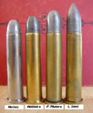 - Pistones CCI 200 Large Rifle. - 25 grains de pólvora PNF4. - 25 grains de sémola de arroz. - Proyectil Lyman de 405 grains de plomo puro, recalibrado a