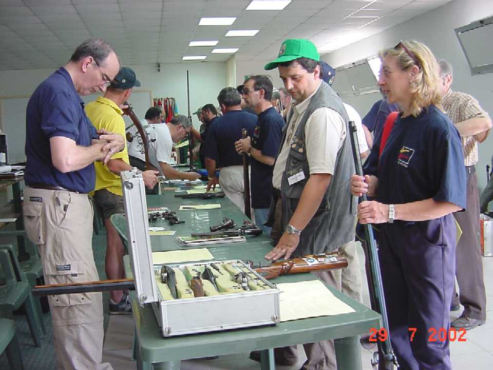 A primera hora de la mañana aparecemos casi todo el equipo por el campo de tiro con el fin de pasar el control de armas (verificar que cumplen los requisitos sin ventajas y acordes con el período histórico al que corresponden). Pasamos este sin ninguna novedad a pesar del celo con que hicieron su trabajo los controladores. Cuando termina casi me extraña que no nos hayan rechazado ninguna. En algunas armas originales, incluso llegaban a desmontar empuñaduras y cajas con el fin de revisar las numeraciones y marcas interiores. Muy bueno el trabajo de los controladores, pero nos tuvieron a todos con "el corazón en el puño" por si encontraban algo que no fuese acorde con su criterio.