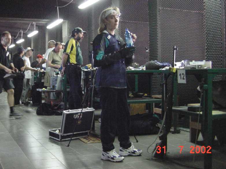 Durante el resto de la mañana seguimos las tiradas del resto de compañeros, pues algunos de ellos (todos) tienen posibilidades, pero a pesar de que van consiguiendo buenas puntuaciones, no se consigue ningún cambio en las posiciones principales. La mayor parte de los tiradores se quejan de que los disparos les van algo bajos (ochos a las seis).