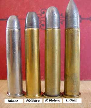 Los cartuchos cargados con pólvora negra, no entrañan el peligro de la recarga con las modernas pólvoras “sin humo” o “nitrocelulósicas”, pudiéndose emplear casi cualquier tipo de pólvora negra y también en cualquier cantidad que quepa dentro de la vaina, sin que por ello suba la presión mas del máximo admitido. Ello permite a los tiradores un amplio abanico de posibilidades en cuanto a proyectiles, recalibrados, grasas, pólvoras (tipo, granulación y cantidad), tacos, aleaciones y un largo etcétera de variantes. Todo ello enriquece nuestros conocimientos sobre el comportamiento y la balística de los proyectiles, dándose la coincidencia paradójica de que los ganadores de las disciplinas de arma larga emplearon el mismo calibre 45-70, pero como podréis observar por la fotografía que aparece en este trabajo y con la descripción del cartucho y su carga, tan diferentes como si se tratara de cartuchos diferentes. El vuelo libre del proyectil (“free bore”) tan importante y hasta cierto punto “crítico” en los cartuchos modernos, es uno de los parámetros que más variación admite y permite en los cartuchos de pólvora negra, sobre todo por la enorme variedad de tipos de estrías, pasos y formas del cono de acceso al ánima, a pesar de mantenernos en una recámara del mismo calibre. En fin una variedad enriquecedora y apasionante en busca de la máxima precisión y regularidad, un paraíso para los amantes de la balística, la recarga y como no, también la fabricación de nuestros propios proyectiles y cartuchos.
