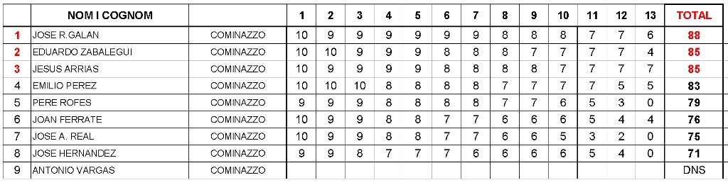 Clasificación final de la especialidad de Cominazzo (pistola de chispa): |