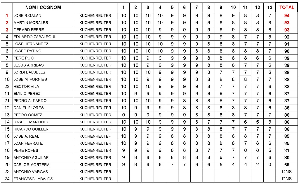 Clasificación final de la especialidad de Kuchenreuter (pistola de duelo de percusión): |