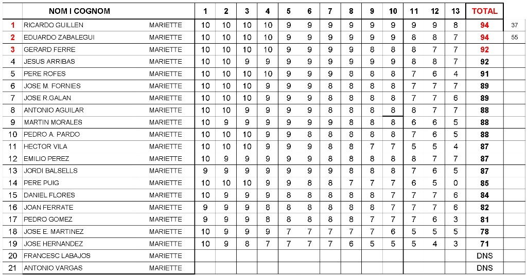 Clasificación final de la especialidad de Mariette (revólver de percusión réplica): |