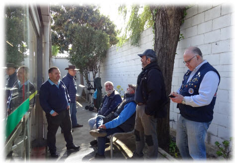 Izq.- Revisando y comentando sobre las particularidades de nuestras armas. Der.- Magnífico el "ambiente" que reinó durante las dos jornadas de tiro, dentro y fuera de la cancha de tiro. |